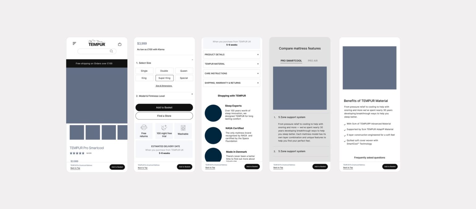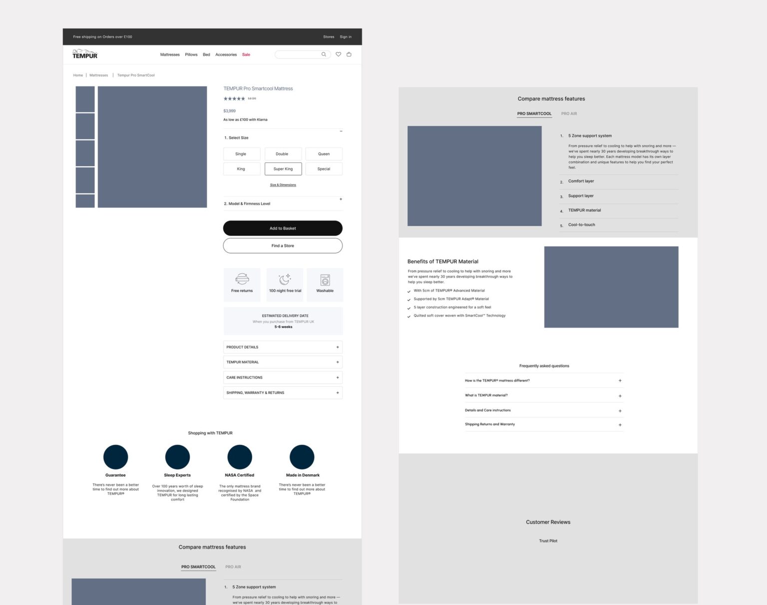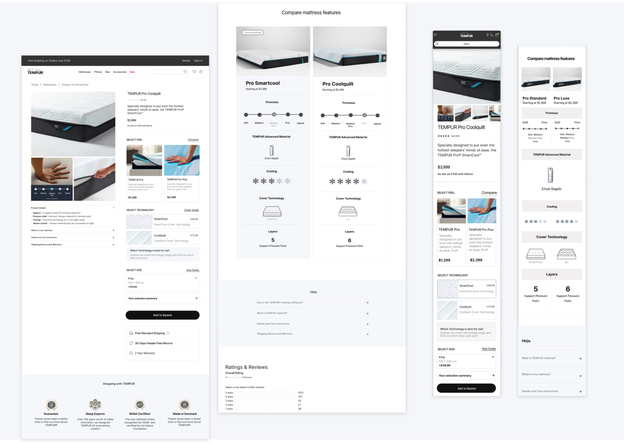 In close collaboration with our development team, we created new Product Detail Page (PDP) concepts aimed at solving user pain points through two distinct UX approaches. By testing these concepts side by side, we’re able to validate our hypotheses and better understand which experiences most effectively engage and convert our customers.