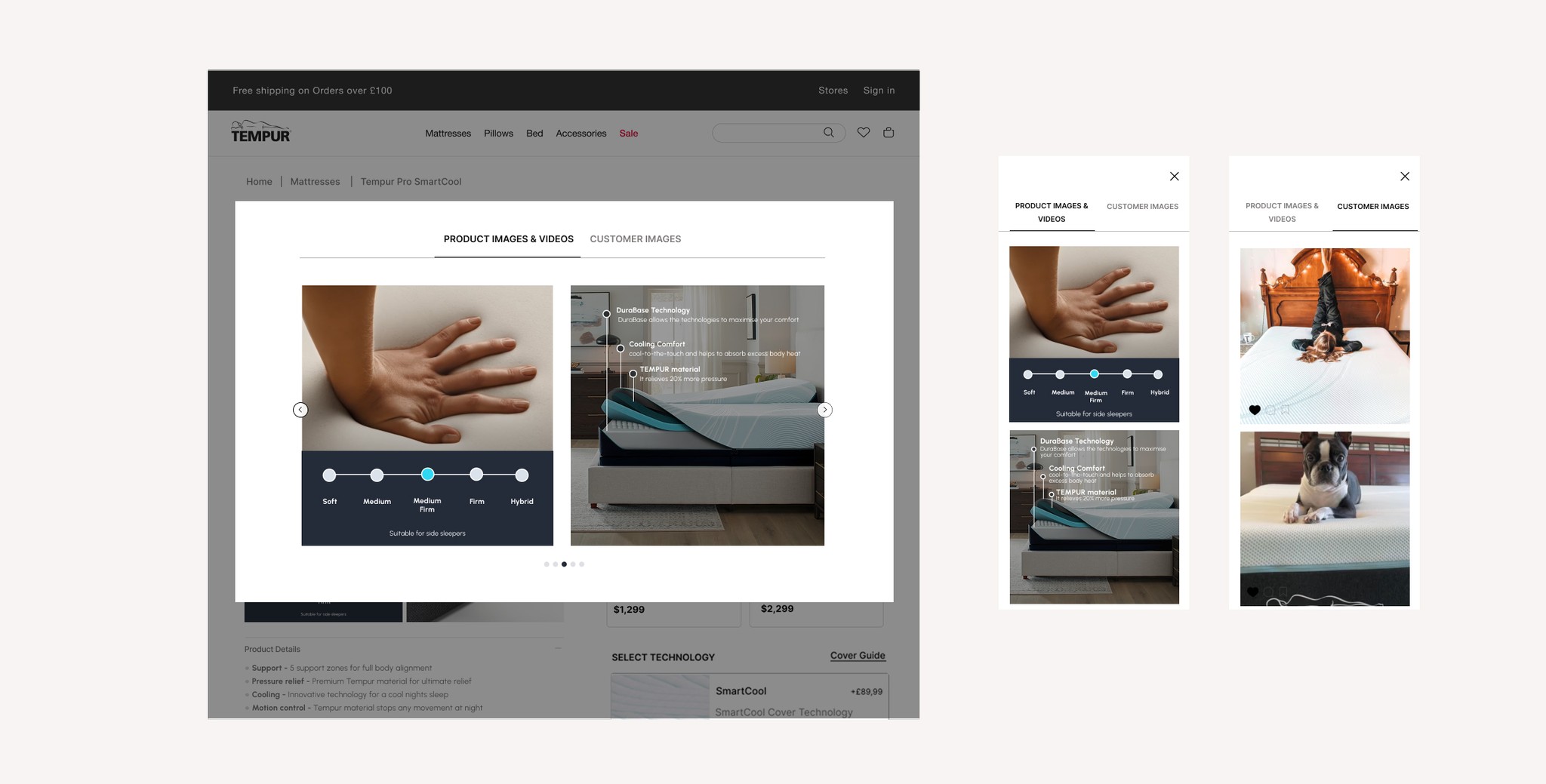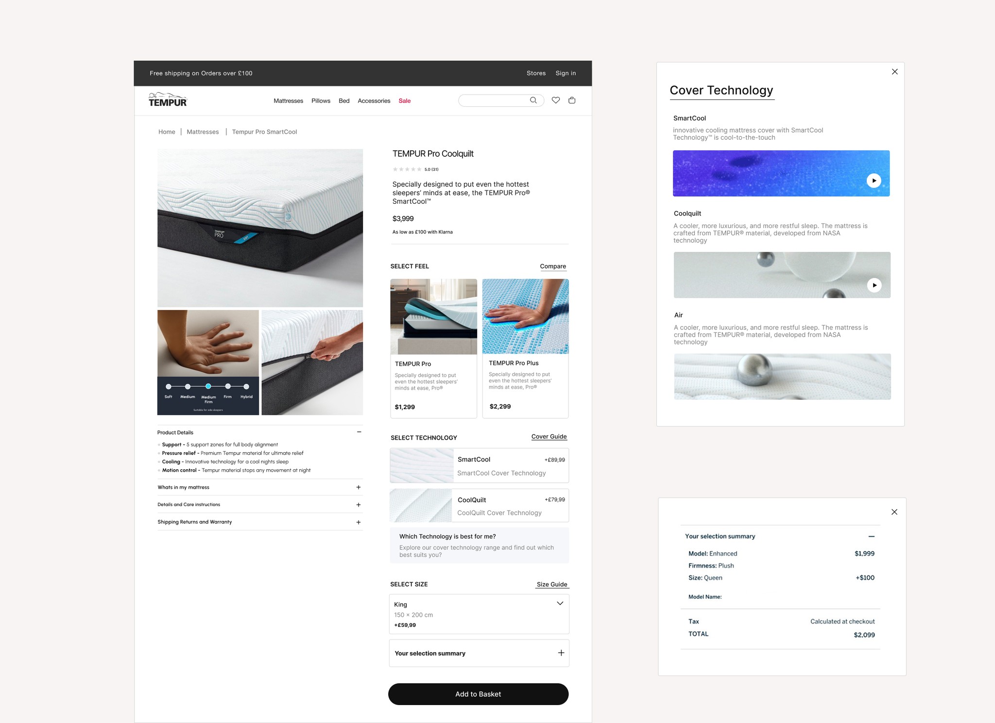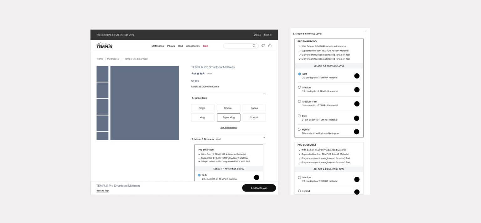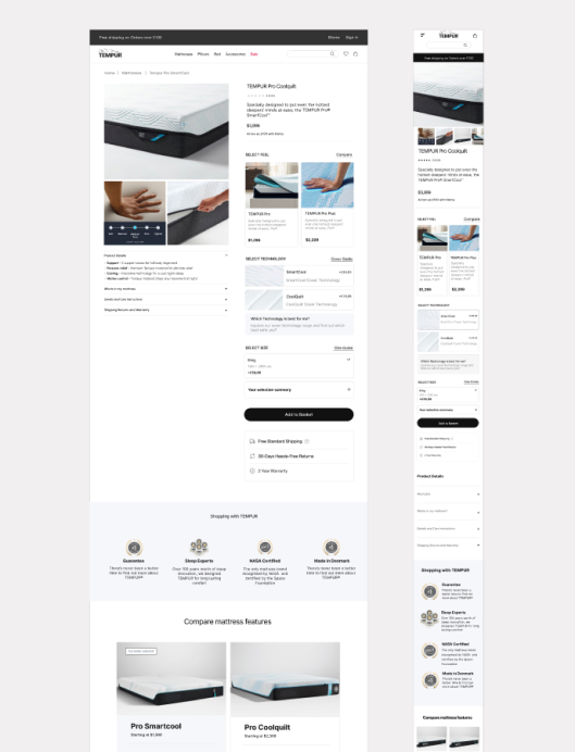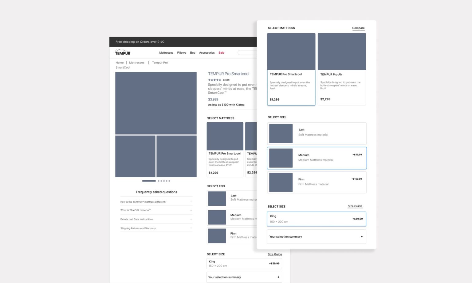 Helping users build their mattress and compare features through a new PDP buy box structure