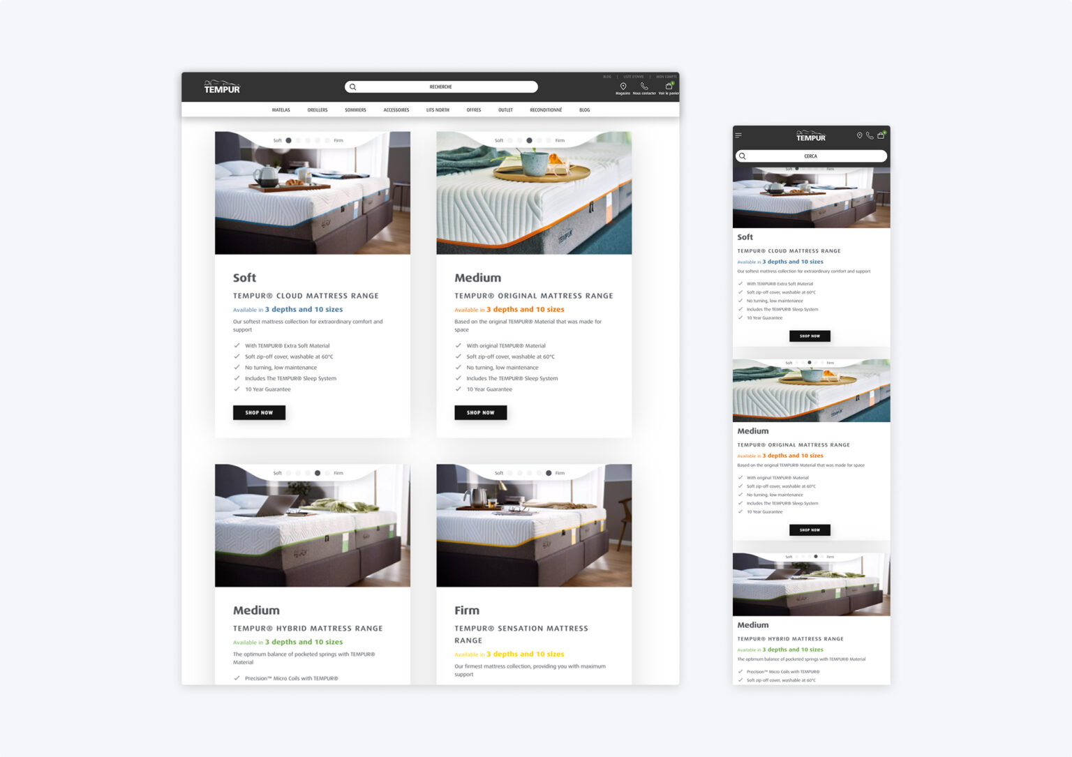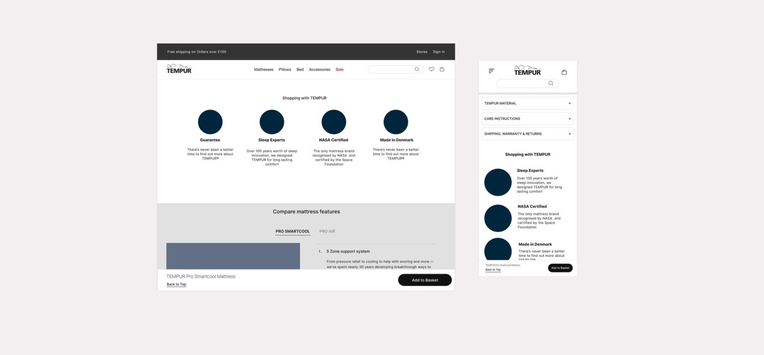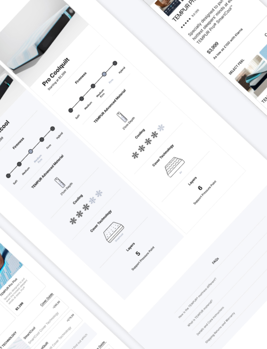 In my role at Tempur, I lead annual UX benchmarking and user research initiatives across all core pages for TEMPUR International. I focused on collecting qualitative insights through Hotjar and Google Analytics, A/B testing to evaluate site usability and navigation. This research uncovered key themes and usability challenges that shaped the direction of our next-phase design work.